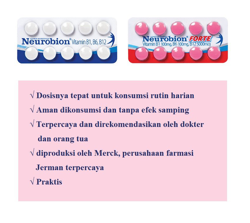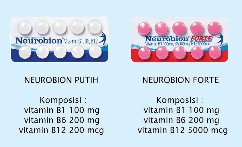 Neurobion putih untuk memperbaiki sel saraf tepi yang ditandai dengan kebas dan kesemutan. Neurobion forte untuk gejala yang sudah mengganggu aktivitas sehari-hari.
